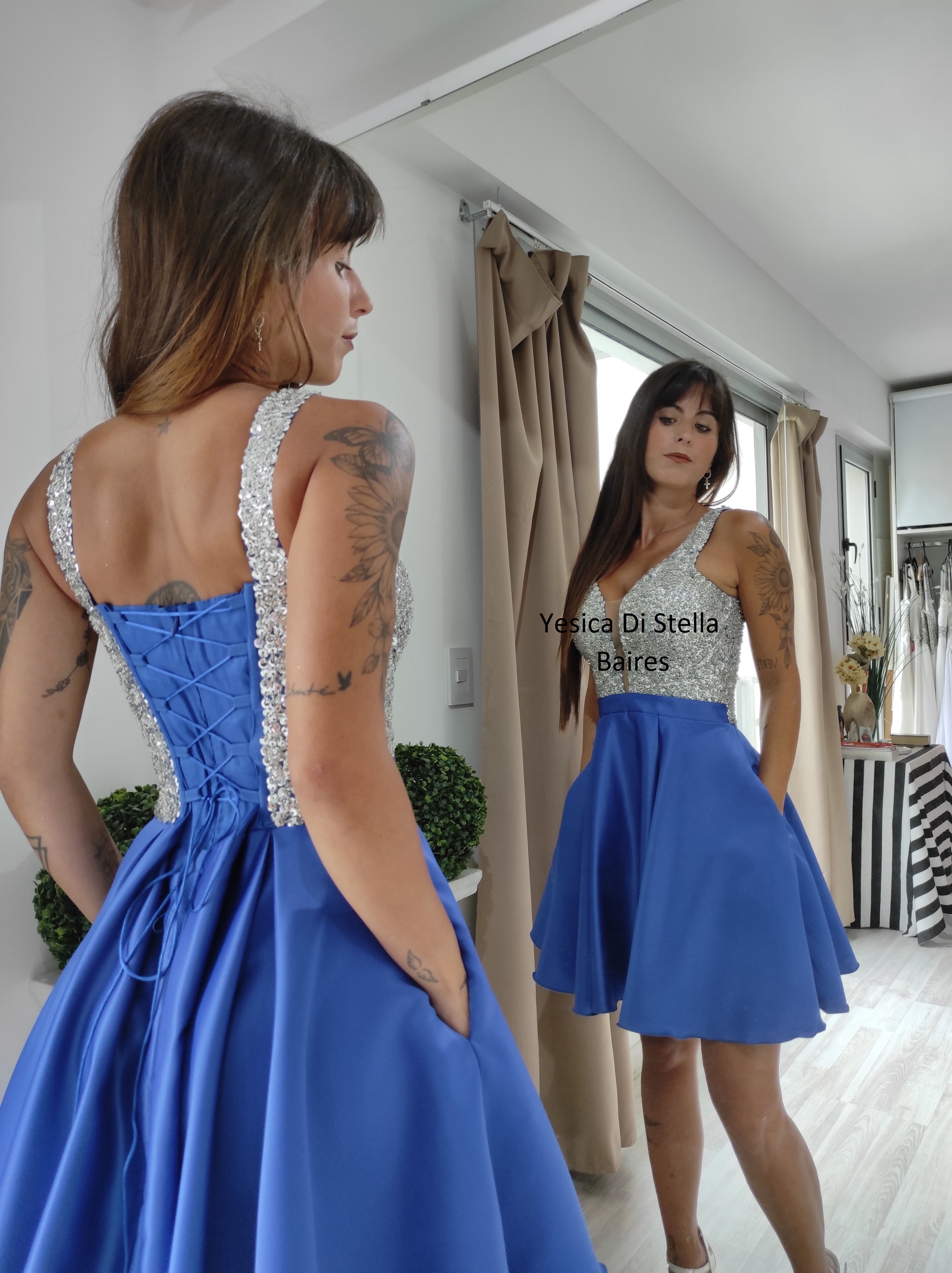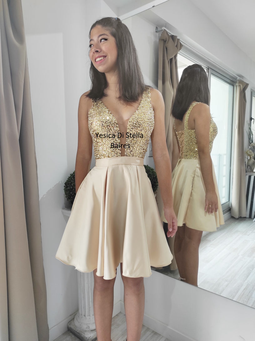 Pechera bordado en lentejuelas y mostacillas, raso , espalda corset permite ajustarse a varios talles.
