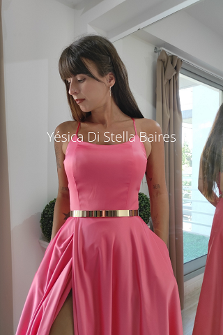 Raso, abertura . Espalda corset regulable.