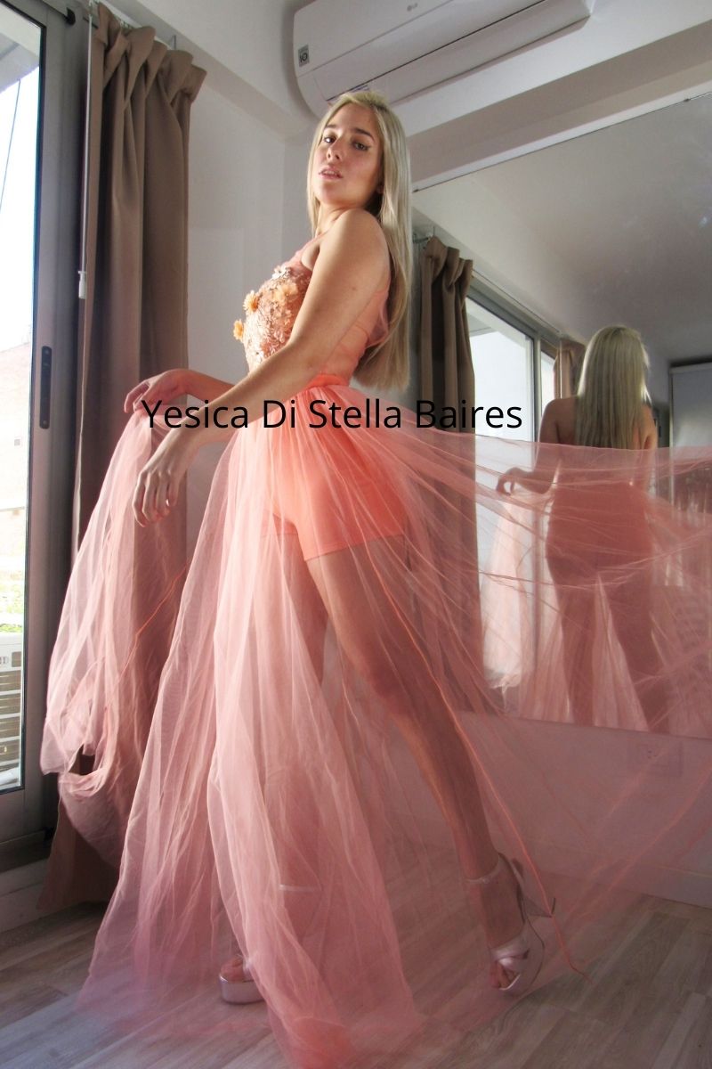 MONO tul bordado encaje y flores, pollera tul desmontable. Talle unico (abarca talle 1 al 2)