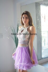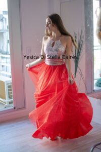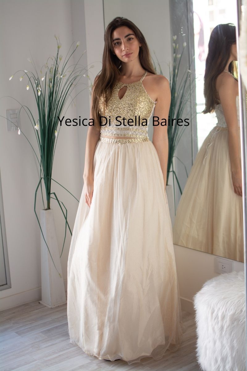 TOP tul bordado en piedras lentejuelas y mostacillas, espalda corset lo q permite abarcar varios talles. Pollera larga + pollera corta.Talle unico (abarca talle 1 al 2)