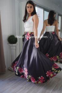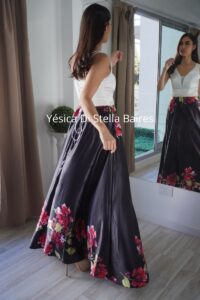 Vestido raso estampado. Espalda corset permite ajustarse a varios talles. Talle unico(abarca talle 2 al 4)
