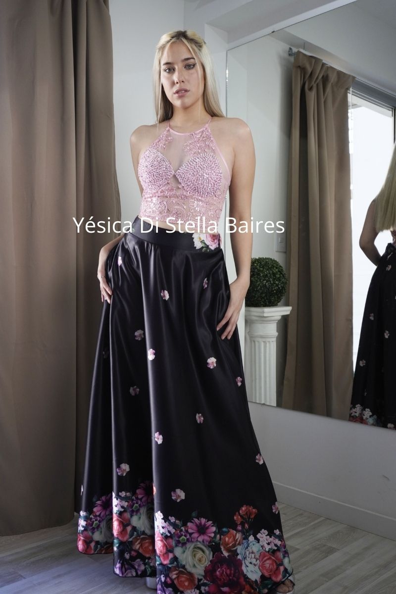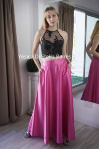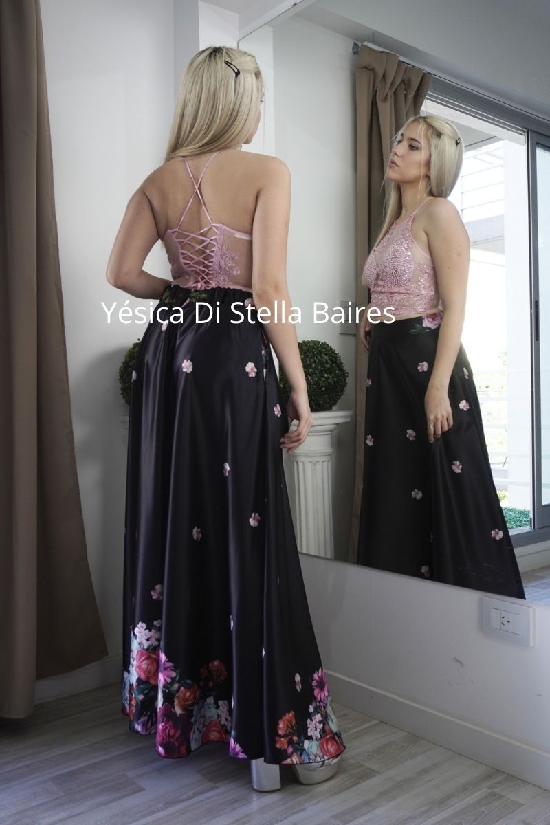 POLLERA HEBE color bordo, negro, azul, rojo, champagne, plata: RASO. TALLE 1-2-3