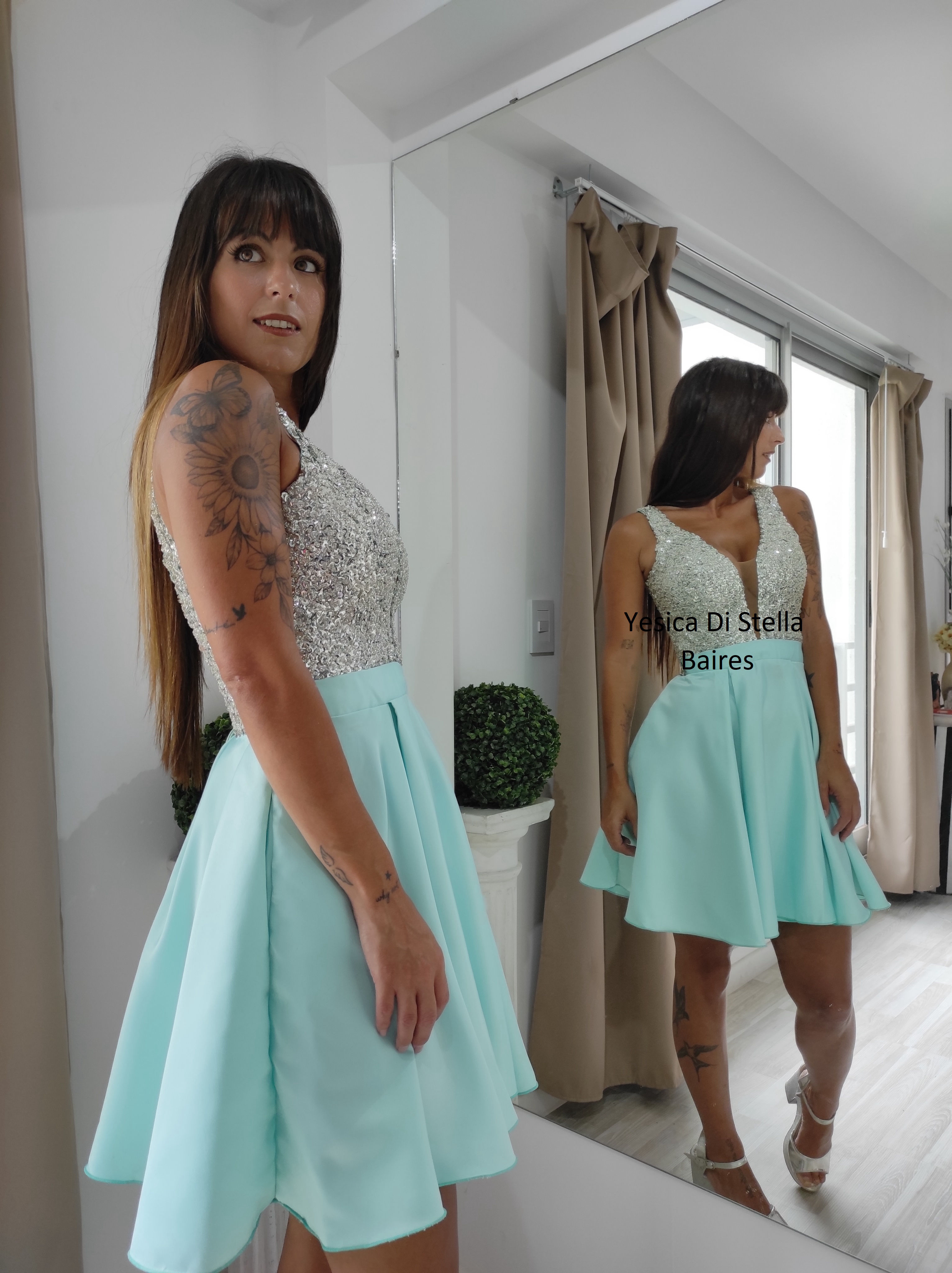 Pechera bordado en lentejuelas y mostacillas, raso , espalda corset permite ajustarse a varios talles.